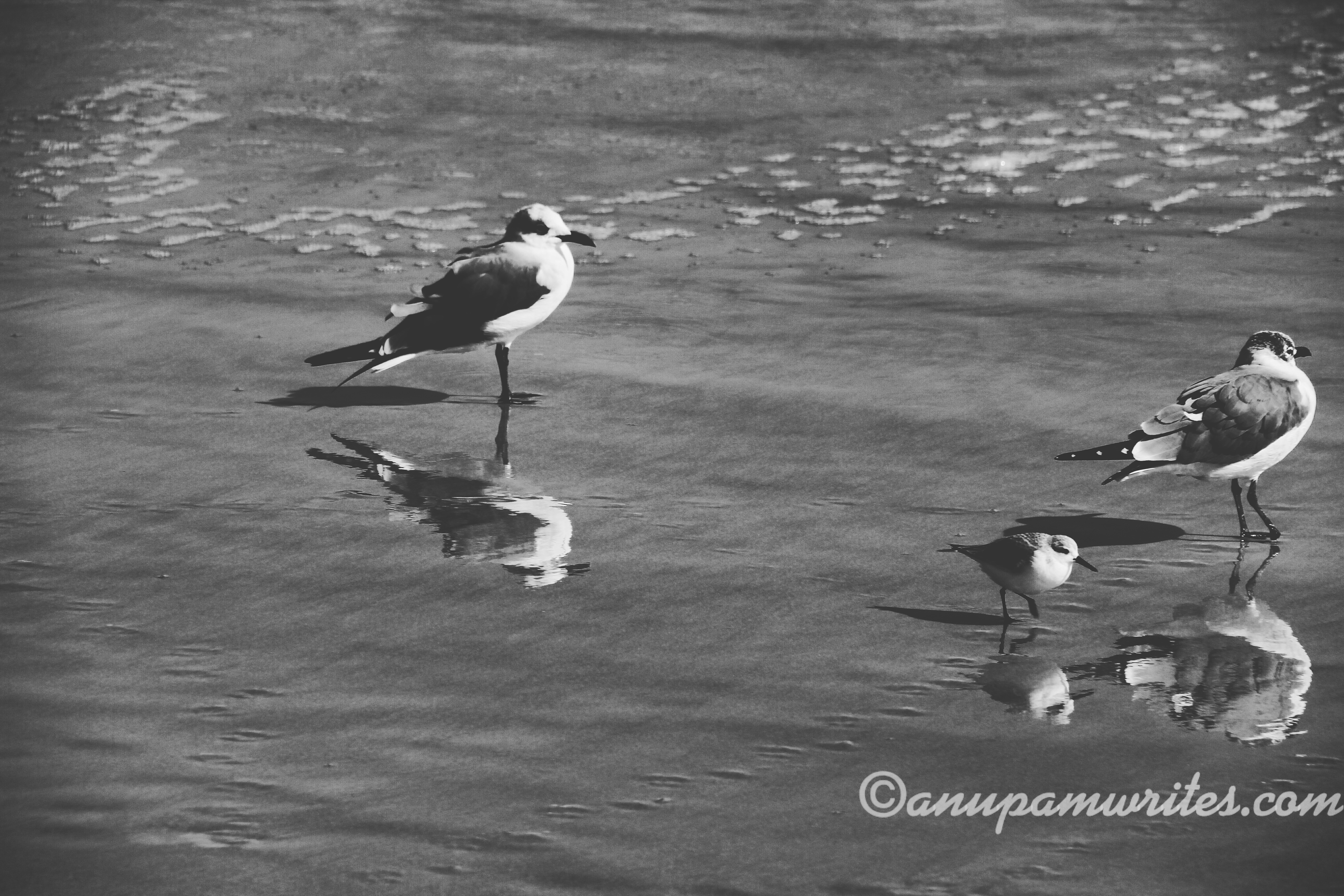 The birdie family enjoying their stroll on the beaches, and me standing alone, awaiting to go back to my family.